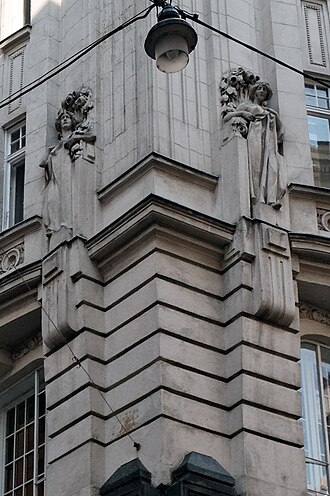 Auch dieses Haus wurde im spätsezessionistischen Stil 1911 erbaut. In ihm befindet sich heute das Theater im Zentrum, das eine bewegte Geschichte hatte.