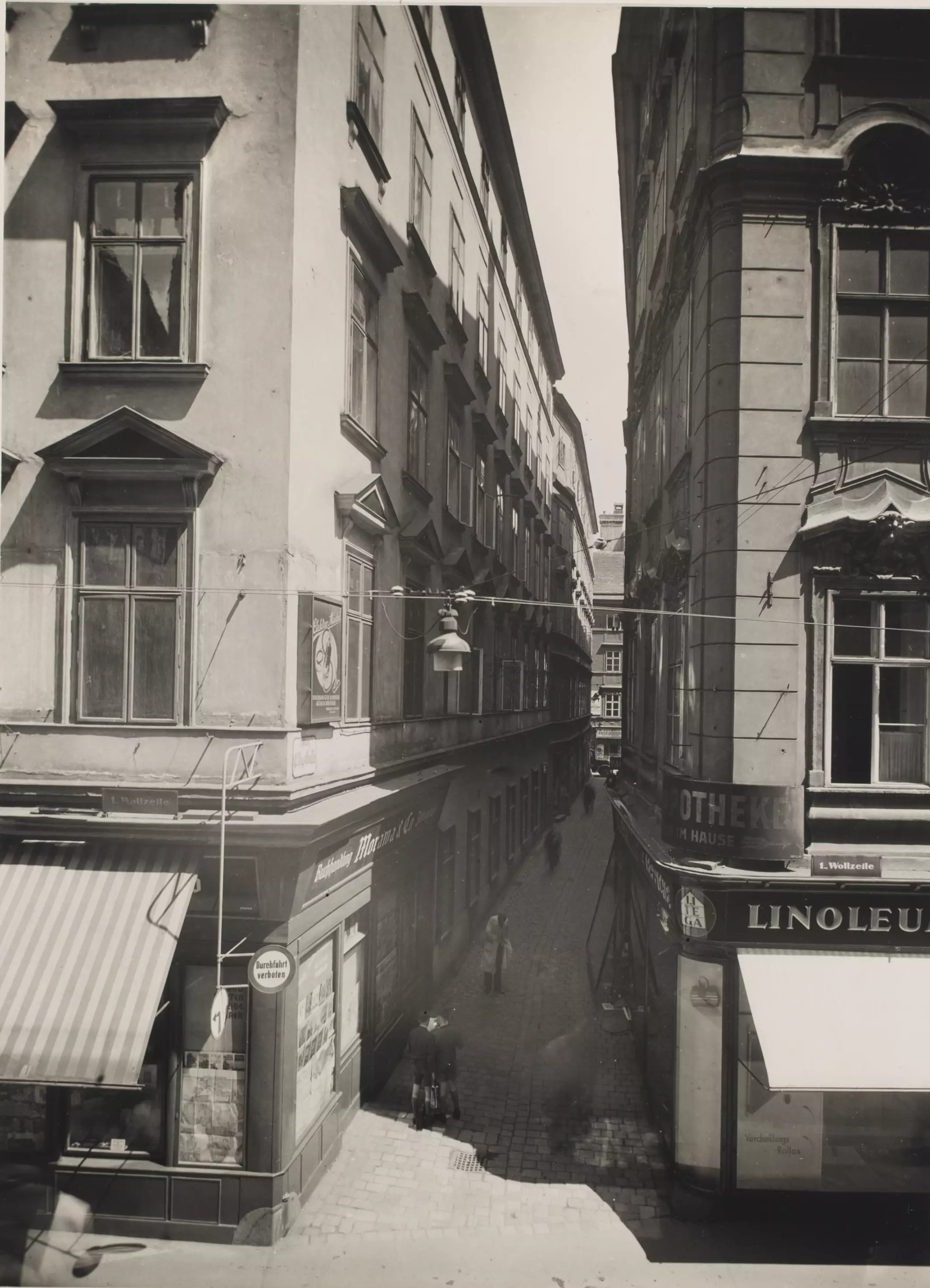 - ↑ Bruno Reiffenstein (Fotograf), 1., Essiggasse 1, 2 u. 3 - Blick von der Wollzeile in Richtung Bäckerstraße, 1942, Wien Museum Inv.-Nr. 79000/3470, CC0 (https://sammlung.wienmuseum.at/objekt/146968/)