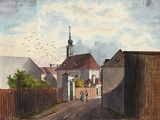 Zuvor befand sich hier das Gemeindehaus Weißgerber und das Margaretenkirchlein.
