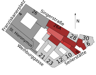 Bei dem Haus handelt es sich um einen Teil (Rückseite) des Franziskanerklosters.