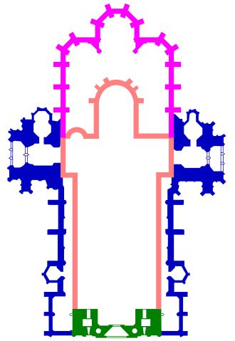 | 1420 | Das aufgehende Mauerwerk des Langhauses wird fertiggestellt. Es fehlt noch das Westwerk. |
