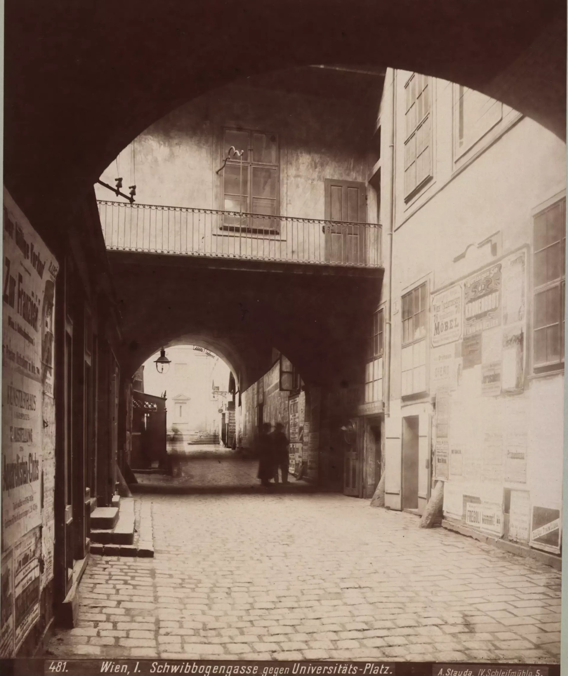 - ↑ August Stauda (Fotograf), 1., Wollzeile 25 - ehem. Schwibbogengasse - Blick Richtung Dr.-Ignaz-Seipel-Platz, 1901, Wien Museum Inv.-Nr. 24506, CC0 (https://sammlung.wienmuseum.at/objekt/100409/)